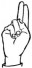 На ћирилици написано НИНА МУМАЛО састоји се из 10 слова [?]. Исписано ћириличном једноручном азбуком за глувонеме: